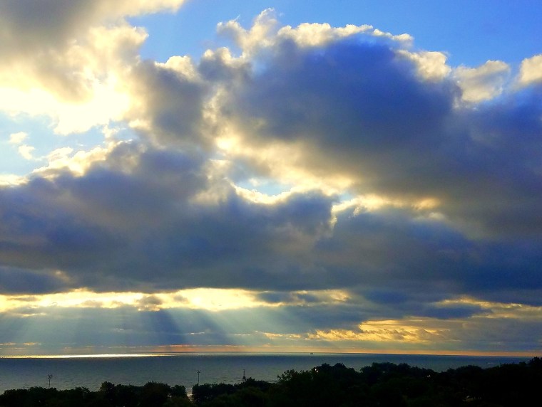 The sun’s rays were certainly determined to light up Lake Michigan this morning, don’t you think? Peeking out from behind a wall of clouds, this scene lasted only a few minutes, but I was grateful to snap a pic to share with you!