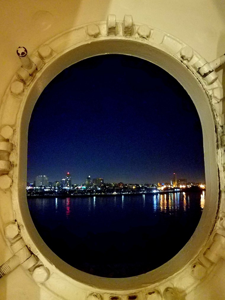 Continuing with the California series from my recent trip to L.A. (I’ve Been Away Because I Won A Trip To L.A.!) here is one of my favorite views! Oh my goodness! This photo was taken through a porthole while I was aboard the RMS Queen Mary. You can see the City of Long Beach, California over the water just after dusk. I cannot tell you how much I absolutely love the Queen Mary! The cool ocean breezes filled the stateroom at night, which literally made me feel as if I was on an ocean trip during one of the Queen Mary’s 1,200 cross-Atlantic voyages.