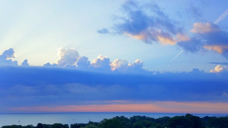 Today’s sunrise certainly looked interesting! To me, it appears as if there is a ‘wall’ of clouds with ‘popcorn-looking’ clouds in a row on top of the wall. I’ve been fascinated by clouds since I was a little girl. Always trying to see shapes and designs, creating a ‘cloud story’, if you will.