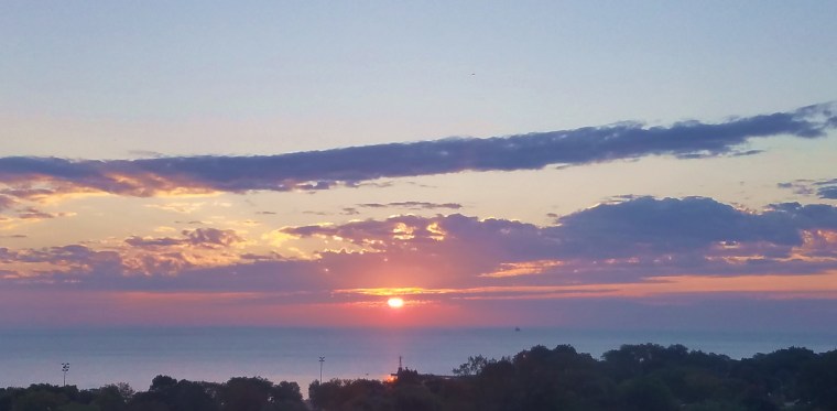 Today’s sunrise was a lovely burst of sunbeams through the clouds! Lots of orange and red hues today; no coincidence that it is going to be about 80F (25C) which certainly seems more like summer than autumn!