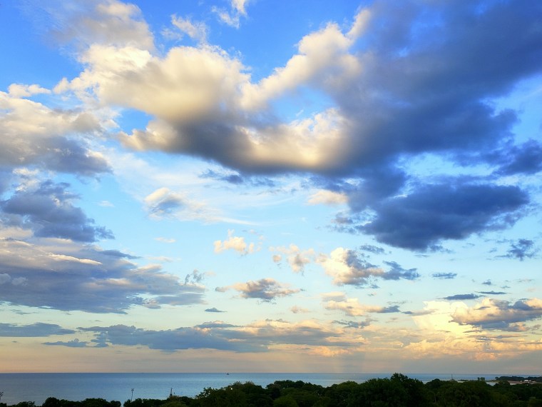 The patterns of clouds over Lake Michigan recently have been quite interesting. I took this photo last week and just love how the light and dark clouds produced such unusual patterns and textures.