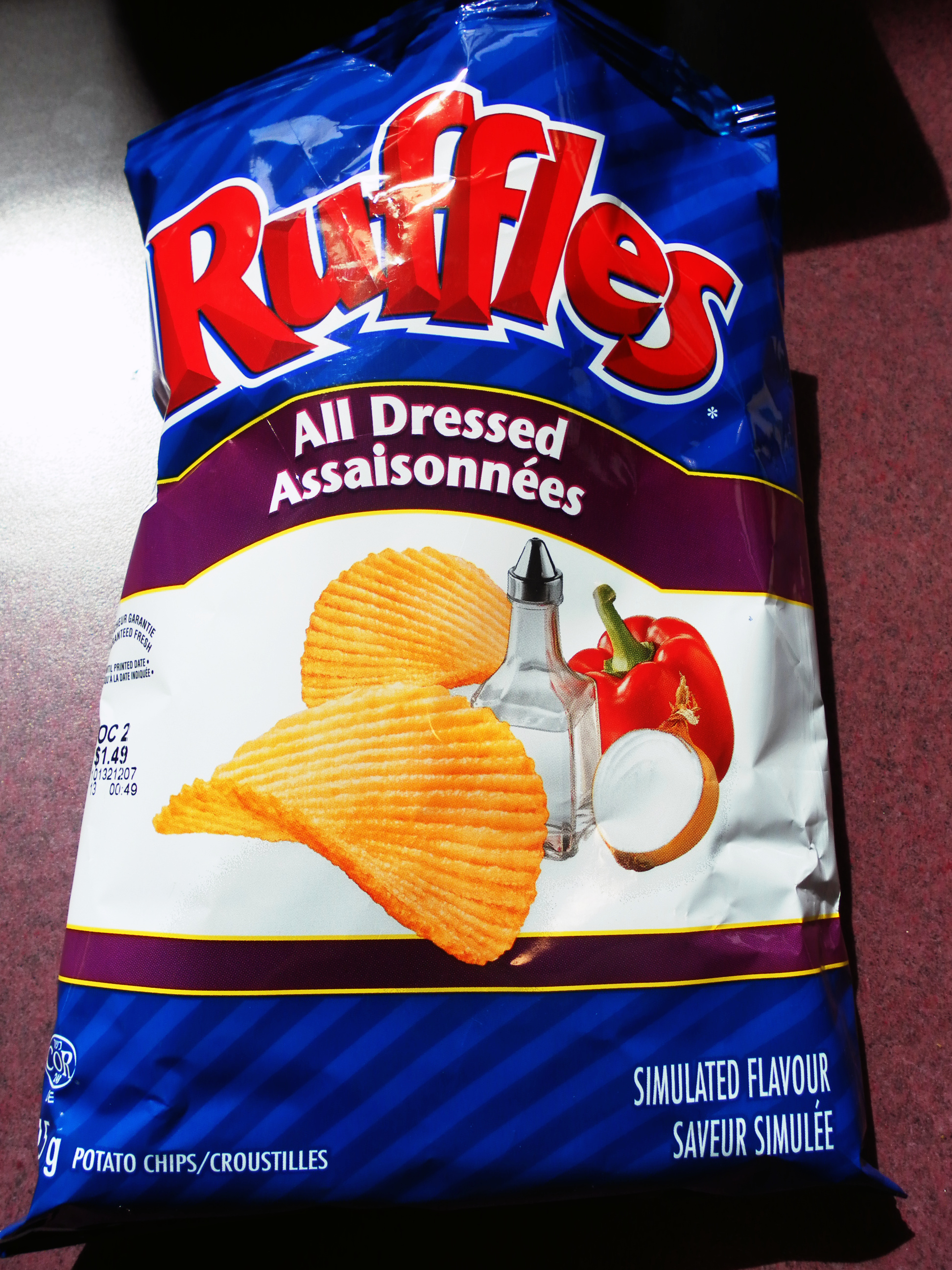 In the above photo, I’ve begun our Canadian fare with one of my favs:  ketchup chips!  Oh how I miss these, ‘tomatoesque’ tantalizers!