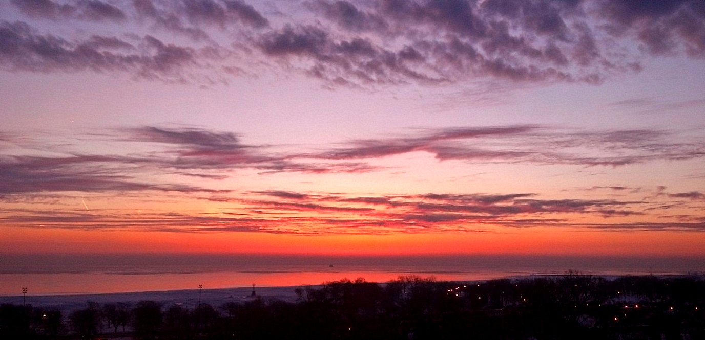 Which brings me back to the picture of the day. I’m sending this out to everyone who needs a nudge as a reminder to take a deep breath, calm the senses, and envelop the serenity and stillness of a Lake Michigan sunrise. Ah, yes, that’s better……………