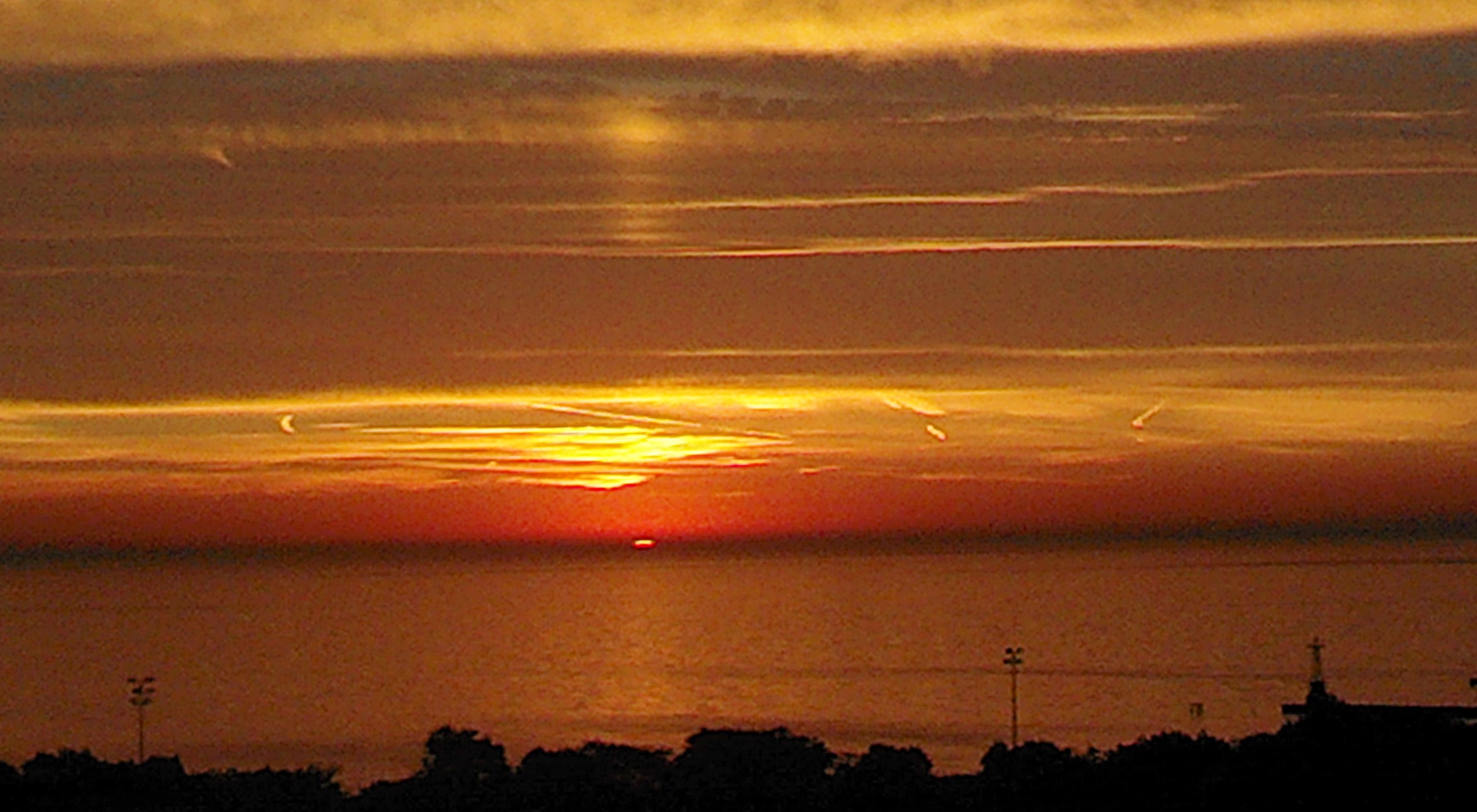 This morning the sky was enveloped in tints of orange and red.Β Under the Tuscan Sun? *grin* No, it’s Chicago, greeting the day with surreal splendor.