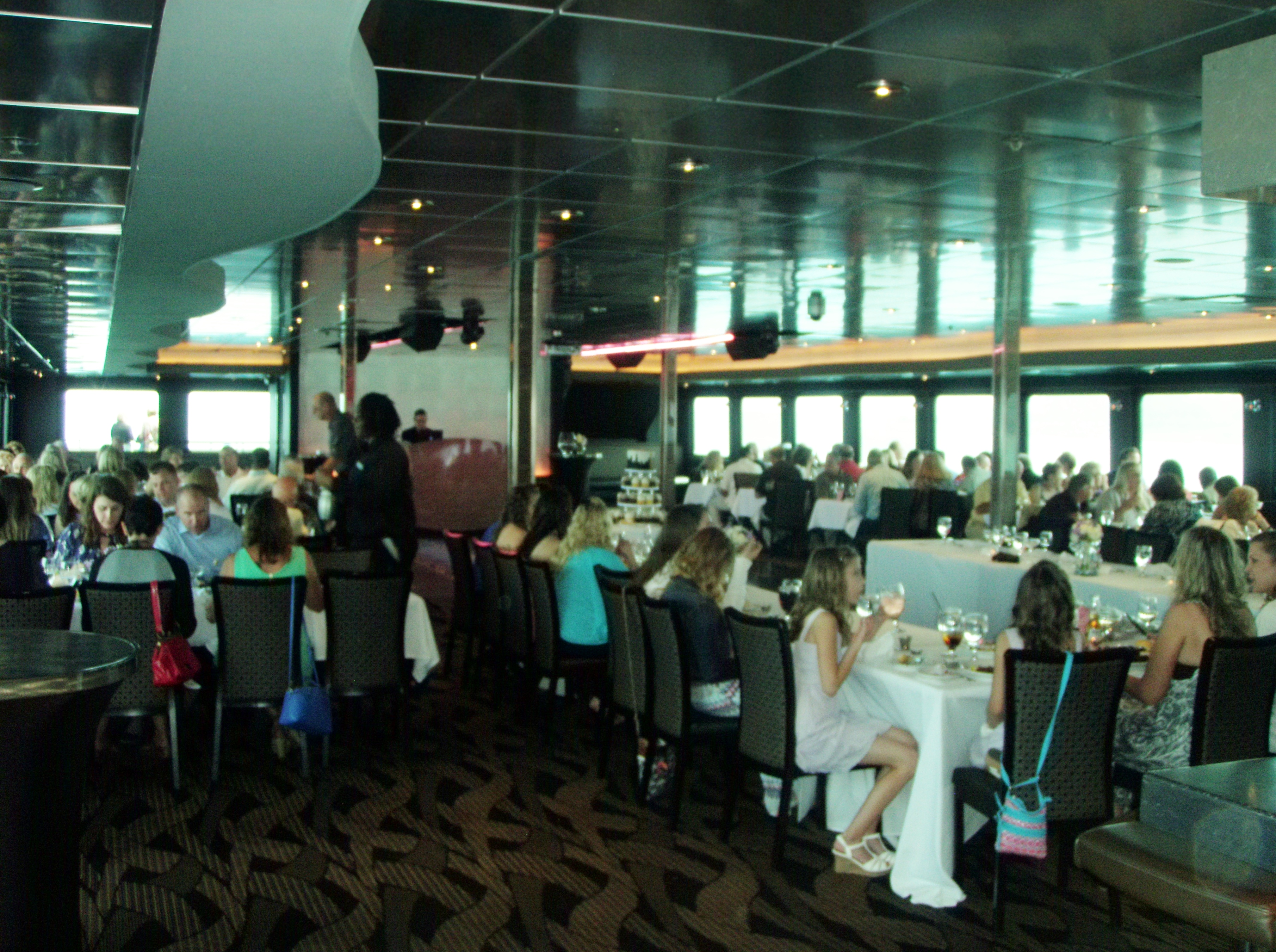 • jewel decks have dining areas, dance floors; observation deck has seating for relaxing while you cruise;
