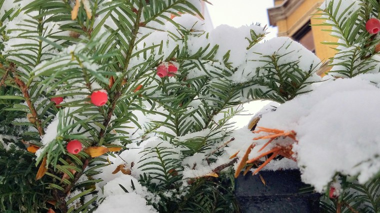 I think this might just be the first sign of winter here in Chicago!Β With snow gently placed on Yew bushes, it is beginning to look like the colder temperatures have arrived!