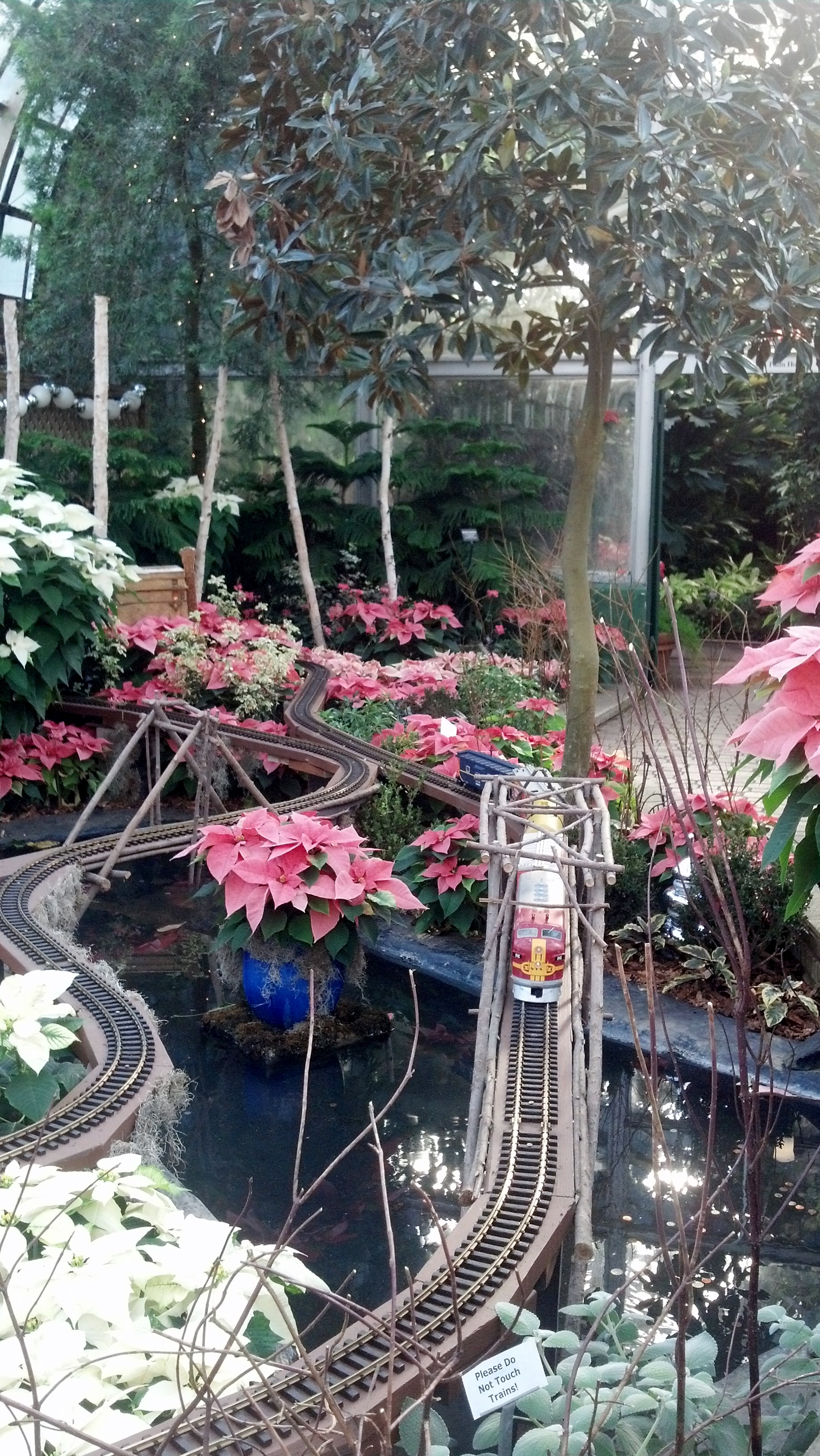 I was thrilled to see a model train coming ’round the bend, as it were. I thought I spotted the word, “Canadian”, but I wasn’t quite sure, so I waited for the train to travel around the circuit, camera poised, and there it was! “Canadian Apples”, next to the “Fluid Recycling Services” tank. Hhhhmmm, best not to mix up the two; I don’t know about you, but I don’t quite think I’d take to the idea of recycled apples.