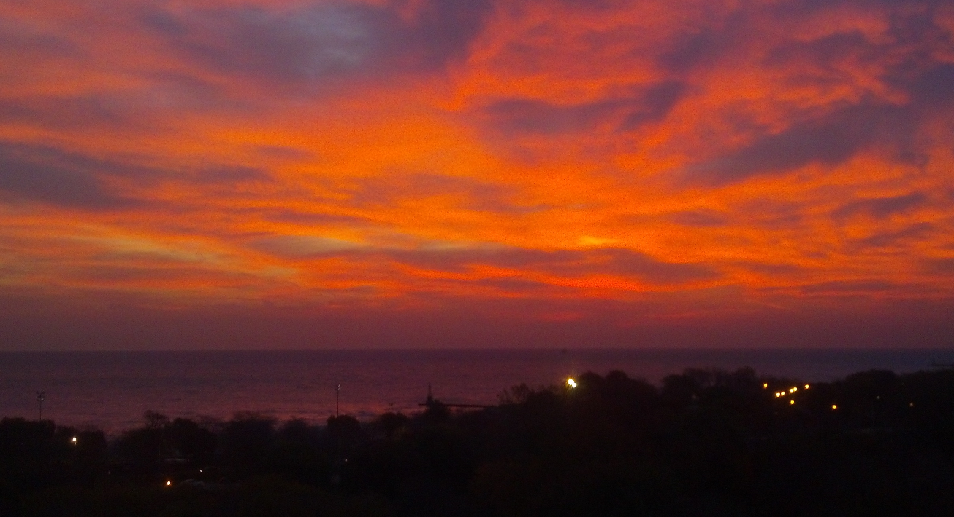 Yet again, I had to share with you another spectacular sunrise that graced Chicago this morning.Β It only lasted about a minute or so, but it was a sight to behold.