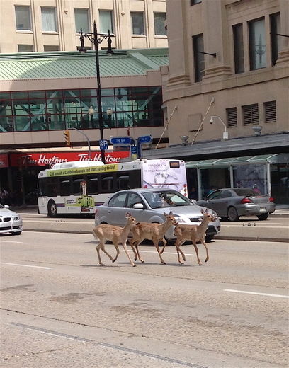 Never fear, my dears, the baby deer were escorted by the fine folks from the Winnipeg Police Department and taken to happier trails.