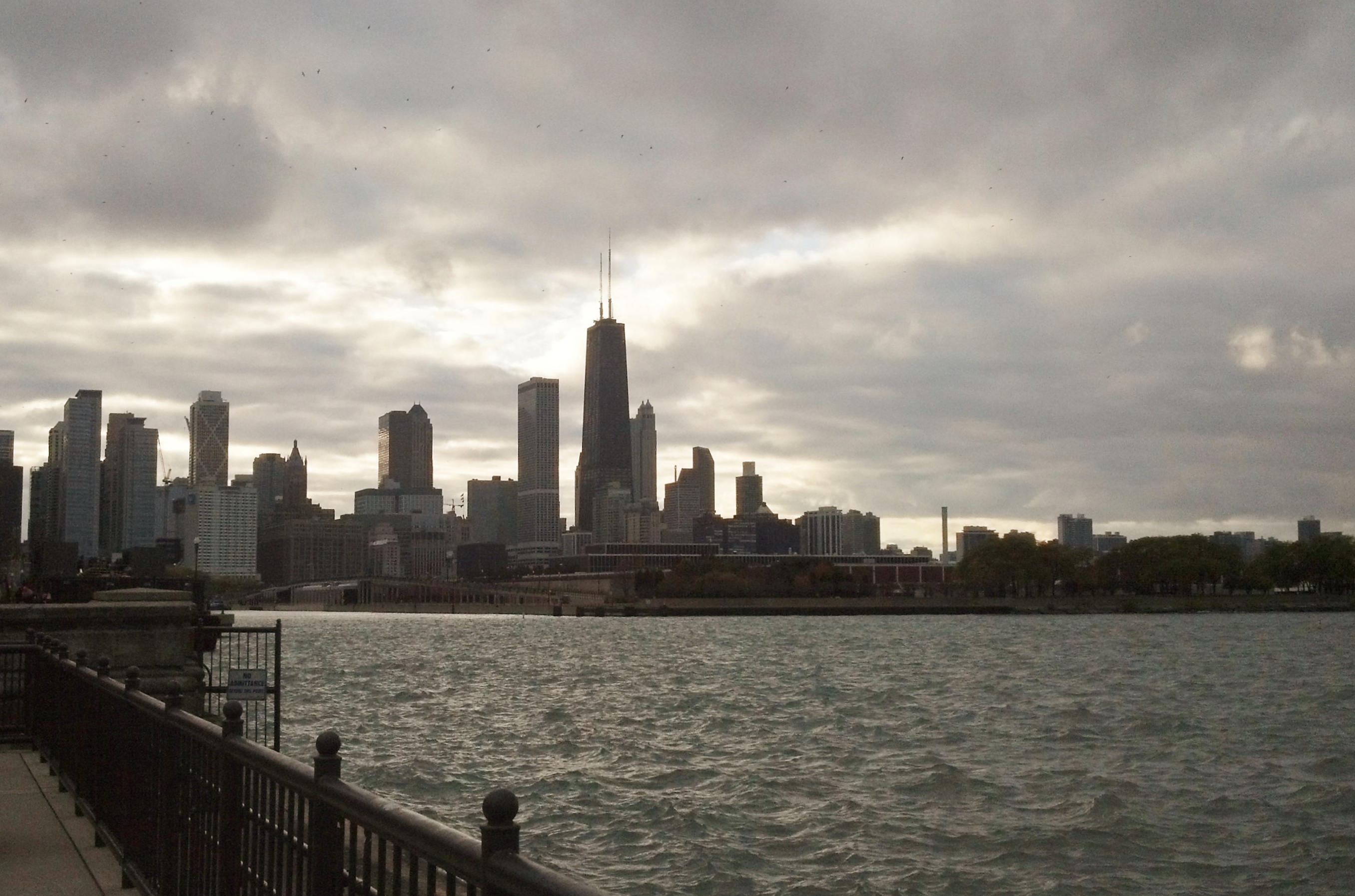 Ah the skies; you can see the John Hancock Building in the center with its antennae reaching for even greater heights than its already towering presence. Do you recall the photo in a recent post which showed a path in Lincoln Park Zoo that seemed to ‘point’ straight to the John Hancock Building? This angle of the John Hancock was taken from Navy Pier. Can you see the birds in the sky that look like dots? It was incredibly windy, and true to their nature, the birds were going with the air flow!