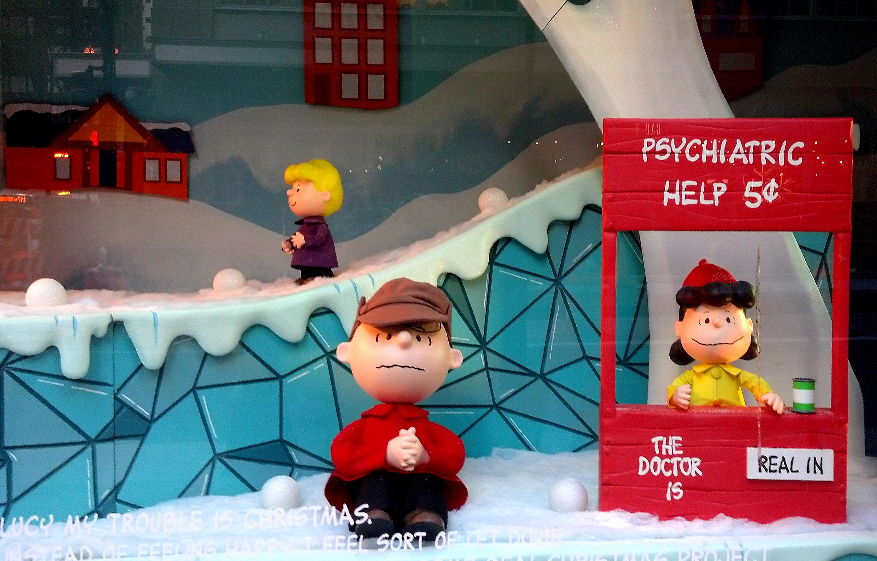 The above photo is that of another of Macy’s holiday windows.Β  Due to the recent release of, “The Peanuts Movie”, Macy’s has decorated several of their windows in good ‘ol Charlie Brown style.