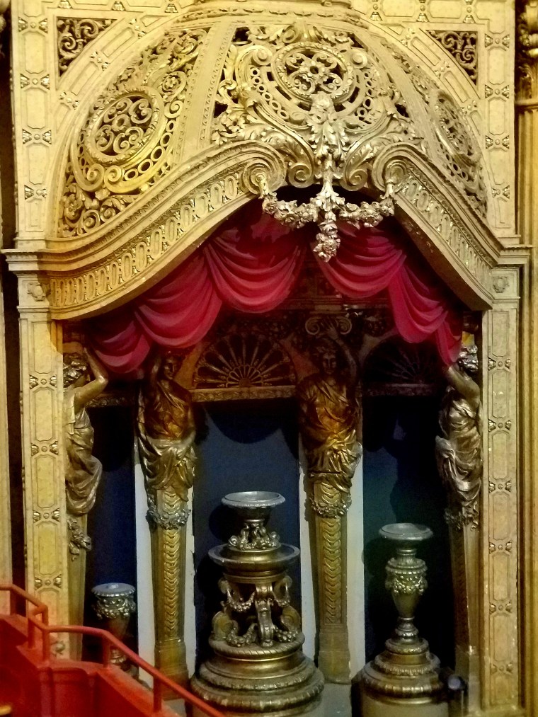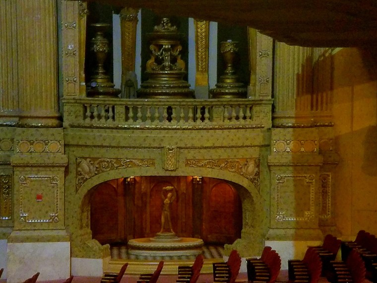 If you happened to have said that it looks like a fountain, you would be correct! During my tour of the theatre, our guide noted that this once working fountain had a rather ‘watery’ affect on some of the patrons.  Apparently it was quite distracting to theatre-goers.  The ‘trickling’ of the water led some to suddenly have the need to leave the performance and head to the restrooms! The fountain no longer works for that very reason!