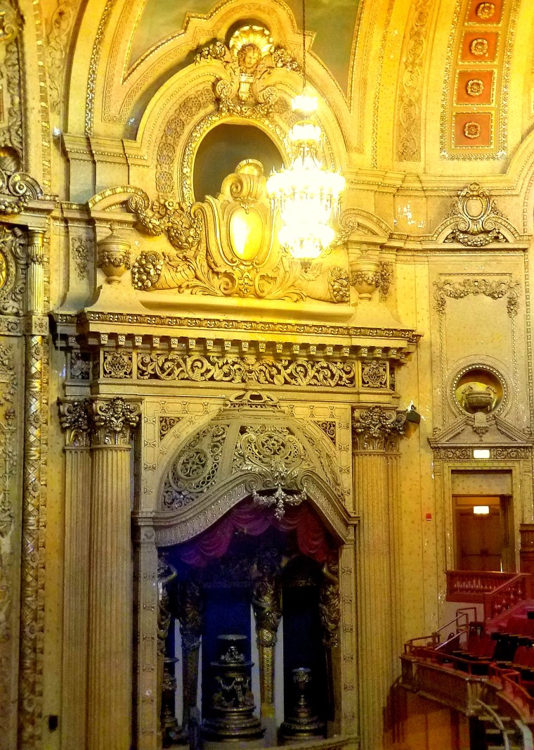 Quite something, isn’t it?  I think that these decorative areas were once used as, ‘box seats’ for the well-heeled patrons back in the early days of the theatre (1921 was the year the theatre first opened its doors to Chicagoans and travelers alike).