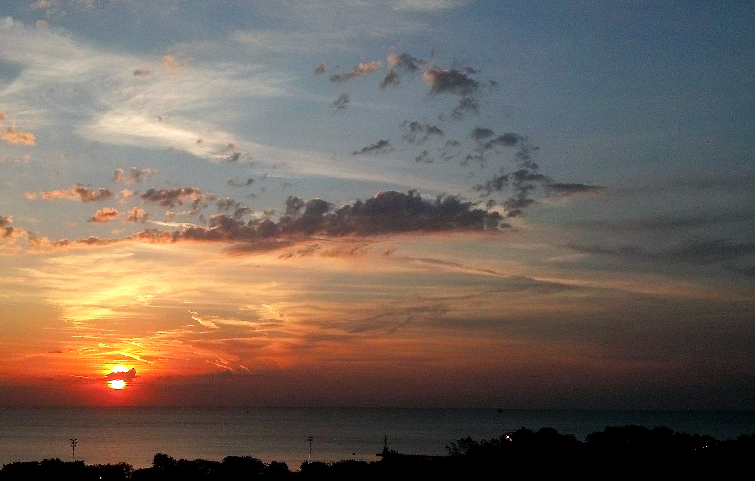 I was greeted again this morning to a gorgeous sunrise.Β There was a few clouds drifting in front of the sun; once again, nature’s light painter created a brilliant picture!