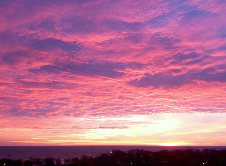Unlike other sunrises I see over Lake Michigan here in Chicago, today it appears as if the clouds were like sponges, soaking up all of the color from the rays of the sun.