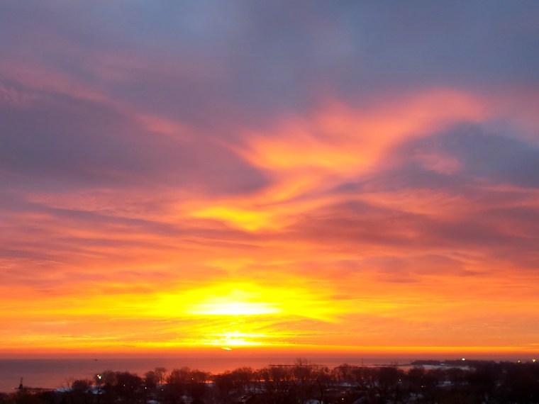 Talk about an eye opener! This morning I woke up to see this phenomenal ‘flames in the sky’ scene over Lake Michigan.